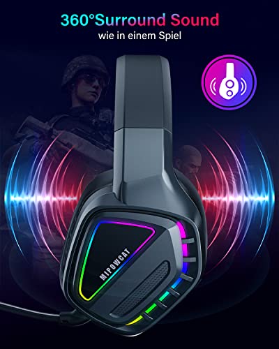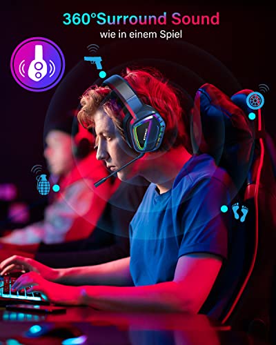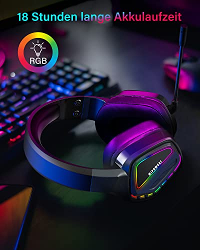 MIPOWCAT R18 Draadloze gamingheadset, 2,4 GHz dubbele spreekspoel, RGB, draadloze gaming-headset (surround sound, ultranieuze latentie, RGB-verlichting voor pc/Xbox One/PS4/PS5/Type-C), BT5.1, zwart