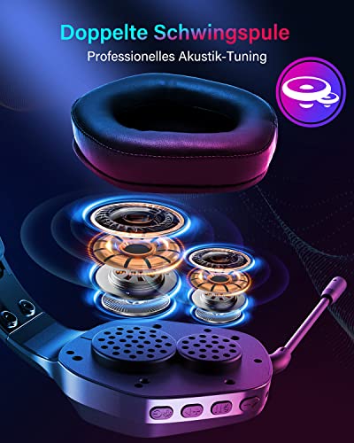 Specificaties: MIPOWCAT R18 Draadloze gamingheadset, 2,4 GHz dubbele spreekspoel, RGB, draadloze gaming-headset (surround sound, ultranieuze latentie, RGB-verlichting voor pc/Xbox One/PS4/PS5/Type-C), BT5.1, zwart